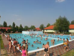 In dem mit Sitzbänken versehenen Thermalbad steht den Kurgästen das ganze Jahr hindurch Heilwasser mit einer Temperatur von 36-38 °C zur Verfügung. Die, die sich erst jetzt mit dem Schwimmen vertraut machen, werden mit einer Kinderbassin, die ganz Kleinen mit einem Planschbecken erwartet. Den Schwimmern steht ein 33 m langes Überlauf-Schwimmbecken mit ebenerdigem Wasserspiegel zur Verfügung. Im Winter und im Fall einer Wetterverschlechterung mögen unsere Gäste das neugebaute überdachte Bassin ebenfalls in Anspruch nehmen. |